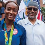 Dalilah Muhammad is an American hurdler and sprinter. She won gold in the 4×400 meters relay and silver in 400 meters hurdles at the 2020 Olympics, and gold in the 400 meters hurdles at the 2016 Olympics.